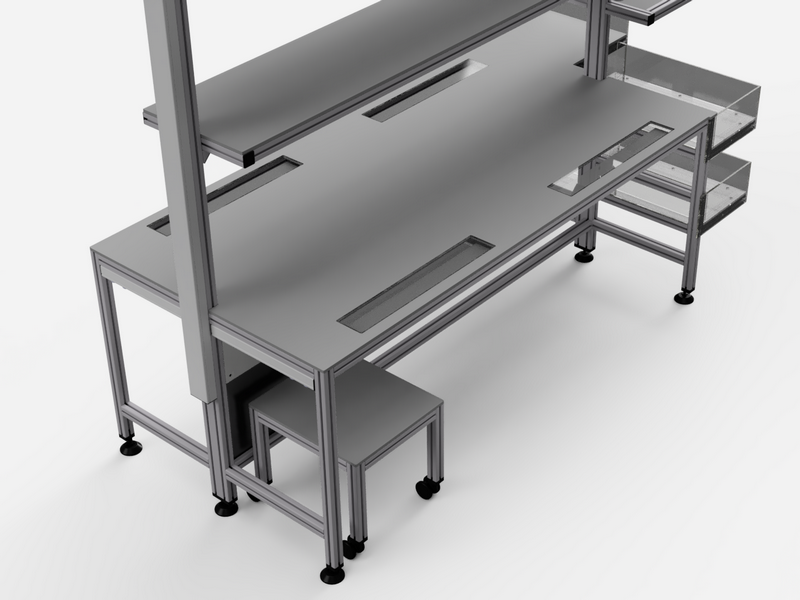 Przemysłowe stanowiska montażowe i robocze z profili aluminiowych